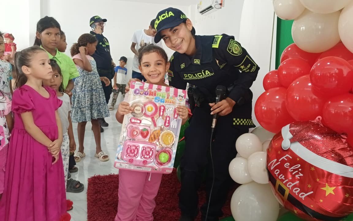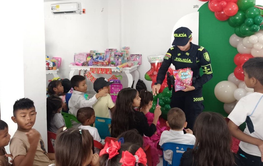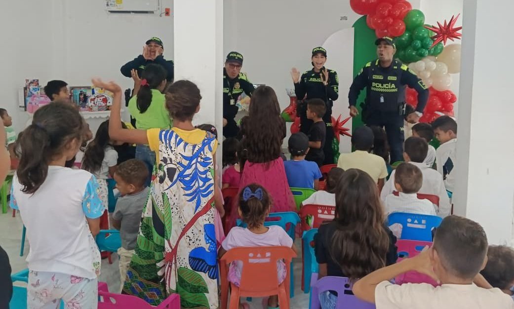 En el barrio Villa Sharin, ubicado en la comuna 10 del Distrito de Riohacha, se llevó a cabo una jornada navideña dedicada a la niñez, organizada por el Grupo de Protección al Turismo y Patrimonio Nacional, en articulación con el Grupo de Infancia y Adolescencia, con el acompañamiento de una Fundación que opera en el Distrito.